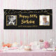 Celebrate any age birthday (shown for an 80th) with this editable black and gold banner sign featuring 2 photos (perhaps "then and now" pictures, your custom text shown in an editable hand-lettered calligraphy typography and gold and white string lights. EDITABLE COLOR: The black background colour and text fonts and colour can be changed to coordinate with your party colours by in the EDIT section. The sample is shown in the 2.5x6' indoor option--other sizes and "outdoor" are available on the ordering page. ASSISTANCE: For help with design modification or personalisation, colour change, resizing, transferring the design to another product or if you would like coordinating items, contact the designer BEFORE ORDERING via the Zazzle Chat MESSAGE tab below or email makeitaboutyoustore@gmail.com.