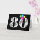 Bold number 80 for birthday with colourful rainbow balloon bouquet on black