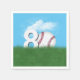 A white baseball in green grass, blue sky, and clouds for an 80th birthday.