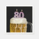 Number 80 candle in mug of beer on black for 80th birthday party.