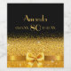 Elegant, classic, glamourous and feminine for a 80th birthday. A gold coloured ribbon and bow with golden glitter and sparkle, a bit of bling and luxury. Black background. Templates for a name, date of birth and date of anniversary and age number. Golden letters.