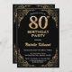 80th Birthday Black and Gold Glitter Frame Invitation