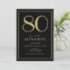 80th Birthday Black and Gold Modern Minimal Adult Invitation