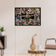 Elegant 80th birthday party poster sign featuring a stylish black background that can be changed to any colour, a 100 photo collage of memories through the years, the saying 'cheers to 80 years', and their name.
