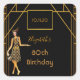 Elegant faux gold and glam for a 80th birthday party! An art deco style birthday party sticker in faux gold and black for a glamorous celebration. Decorated with a 1920's style flapper girl and an art deco style frame. Templates for a date, name and the age 80.