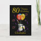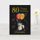 Happy birthday 80th age card. This bright card features an ice bucket with bottle of sparkling wine, flute glasses balloons, and confetti all on a black background with gold coloured text. Can be customise for any age and title then personalise by amending the name and the message inside which currently reads " Happy Birthday, Wishing you a fun-filled fabulous 80th!.". Background colour can be changed if needed, click on the personalise it button. Ideal of male and female birthdays.