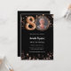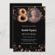 A modern, stylish photo invitation for a 80th birthday party. A classic black background, decorated with rose gold stars. Personalise and add your party details.