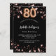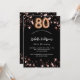 A classic black background, decorated with rose gold stars. Personalise and add a name and party details. The number is written with a balloon style script.