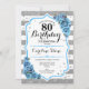 Elegant design in faux glitter silver, white and turquoise aqua blue. Features stylish script fort, stripes and blue roses. Perfect for an elegant birthday party. Can be customized into any age.