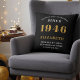 This custom accent pillow features the striking, bold text "BORN 1946", for that person loved for 80 years (and counting)" and allows you to add a custom name (e.g., Grandma, Grandpa, Mum, Dad, etc.) at the bottom, making it a truly unique keepsake.