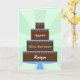 This 80th birthday card allows you to customize the design with the name of the birthday recipient. The design features a fun cake on a green background. Copyright Kathy Henis