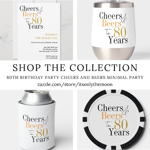 80th Birthday Party Cheers and Beers Minimal PartyDesigned by Only The Moon