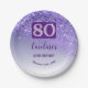 80th Birthday Chic Falling Purple Glitter Paper Plate