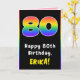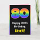80th Birthday: Colourful Rainbow # 80, Custom Name Card