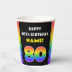 80th Birthday: Colourful Rainbow # 80, Custom Name Paper Cups