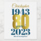 A bold and striking 80th birthday date wine label. This special milestone birthday bottle label consists of birth and birthday date in blue typography - with the 80 and name highlighted in a gold effect font.  Add a message for a custom gift or birthday party personalised drinks.