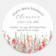 Perfect personalised sticker for an August birthday party. Pink gladiolus is the birth flower for that month. It forms a pretty watercolor bottom border on this floral personalised birthday sticker. The birthday guest of honour's name, age and birthdate are placed above it using elegant calligraphy and typography. All text is editable.