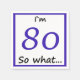 For someone celebrating 80th birthday. It comes with a funny quote I`m 80 so what... and is perfect for a person with a sense of humour.