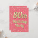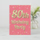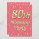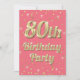 80th Birthday Gold Bling Typography Confetti Pink Invitation