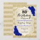 80th Birthday - Gold Stripes Royal Blue Roses Invitation