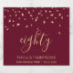 Help her celebrate her 80th birthday in style with this simple but elegant design, featuring faux gold foil triangular confetti sifting down on the word "eighty" in gold handwriting font on a burgundy red background. Personalise it with the name of the honoree in gold sans serif font, along with the occasion and date below in smaller gold type.