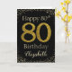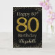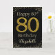Happy Birthday with simulated golden glitter number 80 set on a solid color and framed by faux diamonds and rhinestones. Happy birthday and recipients name in off-white font. Personalize with name or message.