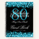 80th Birthday Guestbook Party Sparkles Teal Notebook