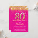 80th Birthday Hot Pink and Gold Glitter Confetti Invitation