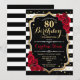 80th Birthday Invitation Black White Stripes Roses