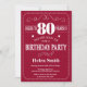 80th Birthday Invitation Burgundy Red and White