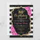 80th Birthday Invitation Pink Black White Stripes