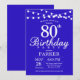 80th Birthday Invitation with String Lights. Royal Blue Background. 13th 15th 16th 18th 20th 21st 30th 40th 50th 60th 70th 80th 90th 100th, Any age. For further customisation, please click the "Customise it" button and use our design tool to modify this template.