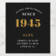 1946 Vintage 80th Birthday Black & Gold Elegant Wine Label. Celebrate your milestone with our exclusive 1946 Vintage 80th birthday wine label. The meticulously designed label with stunning black and gold hues effortlessly enhances the visual appeal of your favourite wine. The year 1946, prominently featured on the label, adds a nostalgic throwback to the day of your birth. Using premium quality material, this label ensures longevity, further cementing its place as a memorable keepsake from your special 80th Birthday celebration. In addition, enjoy the benefit of personalising this label with your name, adding a unique and intimate touch to your celebration. • Stunning Black & Gold Design: Infuses an aura of sophistication & elegance to any wine bottle, making it a perfect centerpiece for your 80th birthday celebration