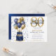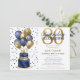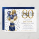 This fabulous men's 80th birthday party invitation featuring a 2-layer navy blue and gold cake with navy blue and gold balloons, the number 80 in gold and shiny blue confetti would be perfect for celebrating your loved one turning 80. It is traditional and classic while being fresh, modern and contemporary. The back is a coordinating navy blue foil.