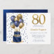 This fabulous men's 80th birthday navy blue cake invitation featuring a 2-layer navy blue and gold cake with navy blue and gold balloons and the number 80 in gold would be perfect for celebrating your husband, brother, dad, friend, uncle, grandfather, great grandfather. It is traditional and classic while being fresh, modern and contemporary. The back is a coordinating navy blue foil.