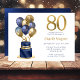 This fabulous men's 80th birthday navy blue cake invitation featuring a 2-layer navy blue and gold cake with navy blue and gold balloons and the number 80 in gold would be perfect for celebrating your husband, brother, dad, friend, uncle, grandfather, great grandfather. It is traditional and classic while being fresh, modern and contemporary. The back is a coordinating navy blue foil.