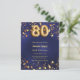 A modern, stylish invitation for a 80th birthday. A navy blue background, decorated with golden stars. The blue colour is uneven. Personalise and add your name and party details.