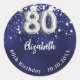 A sticker for a 80th birthday party. A navy blue background colour with faux silver stars. The blue colour is uneven. Add your name, text.