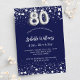 A modern, stylish and glamourous invitation for a 80th birthday party. A navy blue background, decorated with faux silver stars. Personalise and add your name and party details. Number 80 is written with a balloon style font.