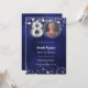 A modern, stylish photo invitation for a 80th birthday party. A navy blue background, decorated with stars. The blue colour is uneven. Personalise and add your photo and party details.
