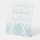 80th Birthday Party Blue White Snowflake Welcome Pedestal Sign