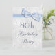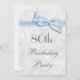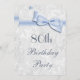 Womens' elegant 80th Birthday Party invitations. Woman's eightieth / eighty years old birthday party invites. Beautiful white damask pattern background with a pretty, stylish blue bow and ribbon image. These glamourous, chic, classy invites are beautifully sophisticated and are decorated / printed on both sides. PLEASE NOTE: All invites on Zazzle have flat printed images. Bow and ribbon images purchased from digital-designs-by-elena. If you need any assistance customising your invitation please contact me through my store and I will be happy to help.