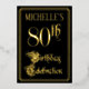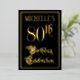 The front of this luxurious, ornate, foil eightieth birthday party/celebration invitation design features the message “80th Birthday Celebration” in elegant script-style text. It also has a custom name. The background of the front is coloured black by default (although it can be customised to a different colour). The back features personalised details about the event, such as the date, time, location, and any other relevant information. Fancy, opulent, customisable invitations like these might be used to invite guests to a birthday celebration/party being held to celebrate somebody’s eightieth birthday. [~Z0000589]
