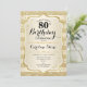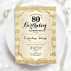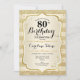 80th Birthday Party Invitation. Elegant design in gold. Features faux glitter gold stripes, stylish script font and confetti. Perfect for a glam birthday celebration.