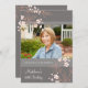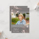Custom 80th Birthday party photo invitations in elegant and modern dark grey, coral peach pink and white with delicate japanese blossoms floral pattern. Personalise these invitations with your own photo and text to create a truly unique birthday celebration invitation.