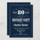 80th Birthday Party - Navy White Invitation