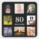 A sticker for a 80th birthday party for a guy, celebrating his life with a collage of 8 of your own photos. Templates for the age 80 and a date. Date of birth or the date of the party. White coloured letters. Black background.