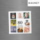 A magnet for a 80th birthday party for a guy, celebrating his life with a collage of 8 of your own photos. Templates for the age 80 and a date. Date of birth or the date of the party. Black coloured letters. White background. Perfect as a party favour, keepsake or as a save the date reminder for your guests.