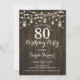 80th Birthday Party Invitation - Rustic Brown Wood.