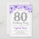 Elegant design in faux glitter silver, purple and white. Stylish floral invitation with diamonds and roses. Perfect for a glam celebration. Please message me if you need further customization.